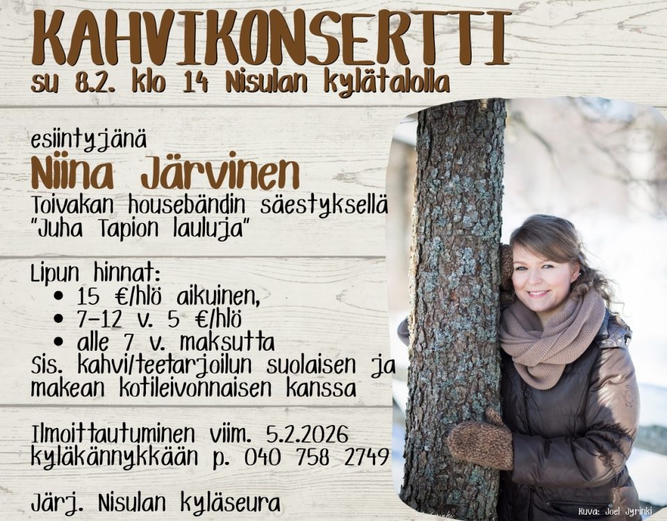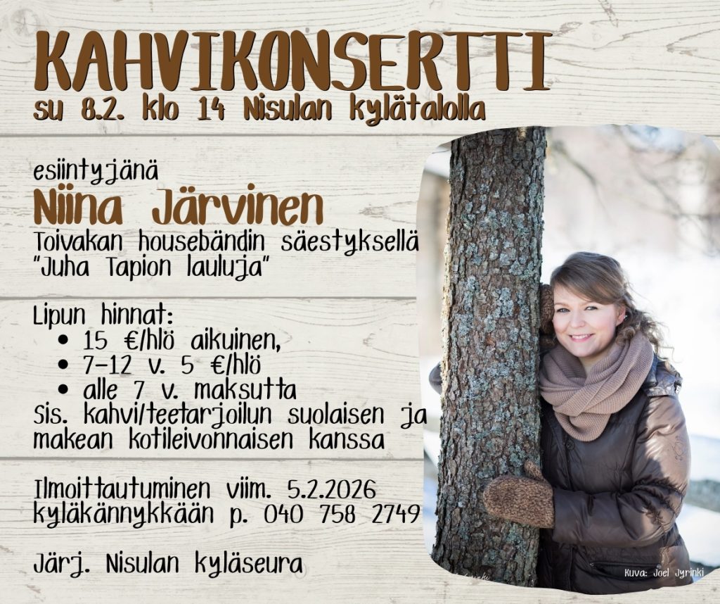 Kylällämme asuu n. 150 henkilöä, kesällä asukasmäärä kolminkertaistuu.Kaunis luonto on yksi silmiinpistävä piirre, kylällä on Päijänteen rantaviivaa kymmeniä kilometrejä. Lisäksi Nisulassa on Vihijärvi ja metsiä värittää lukuisat pienet lammet. Kylän kokoontumis- ja juhlapaikka on kylätalo. Harvinaisuutena kylässämme on perinnemaisema Vaaterin niityt.