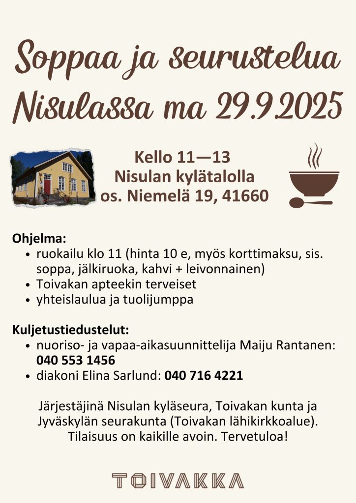 Soppaa ja seurustelua Nisulassa ma 29.9.2025