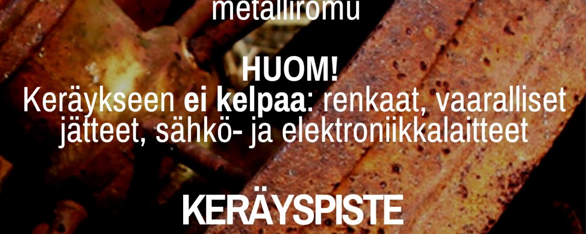 HUOM! Keräykseen ei kelpaa: renkaat, vaaralliset jätteet, sähkö- ja elektroniikkalaitteet.