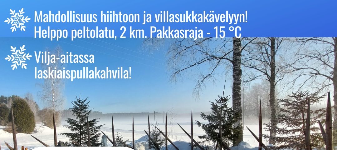 Mahdollisuus hiihtoon ja villasukkakävelyyn! Helppo peltolatu, 2 km. Pakkasraja – 15 °C