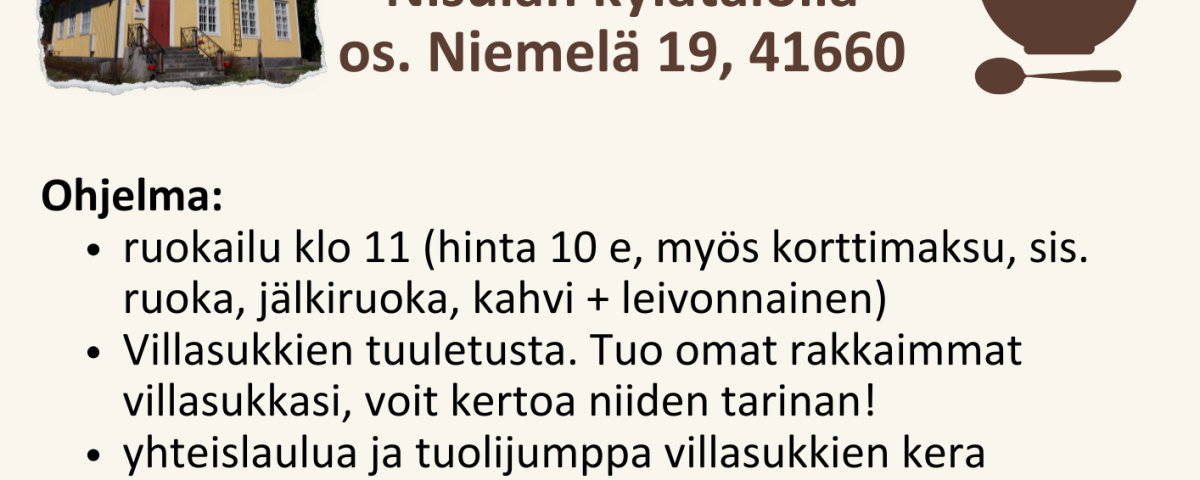 Järjestäjinä Nisulan kyläseura, Toivakan kunta ja Jyväskylän seurakunta (Toivakan lähikirkkoalue). Tilaisuus on kaikille avoin. Tervetuloa!